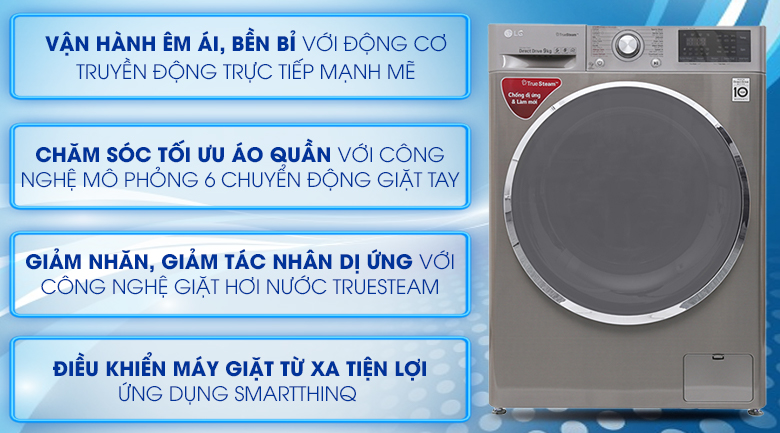 - Cho phép điều khiển máy giặt từ xa qua ứng dụng SmartThinQ.