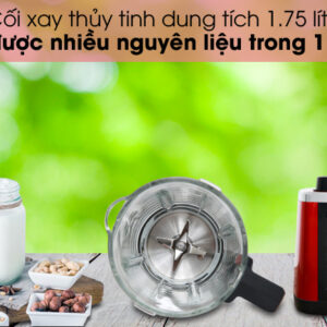 - Cối xay thủy tinh chịu nhiệt, dung tích 1.75 lít tiện cho gia đình 6 người.