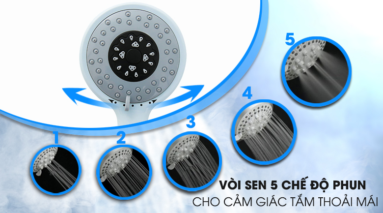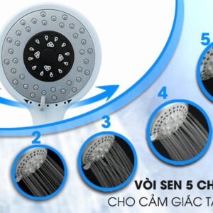 - Vòi tắm phun 5 cấp bậc nước đa dạng, đáp ứng nhiều nhu cầu sử dụng.