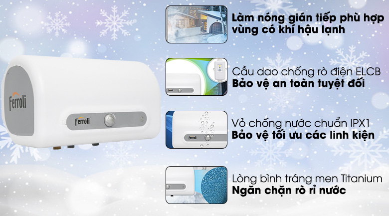 - Cơ chế làm nóng gián tiếp lý tưởng khi lắp đặt ở khu vực có khí hậu lạnh.