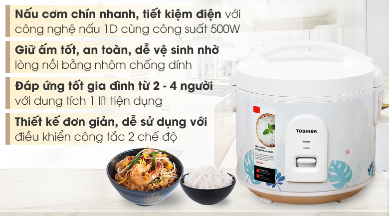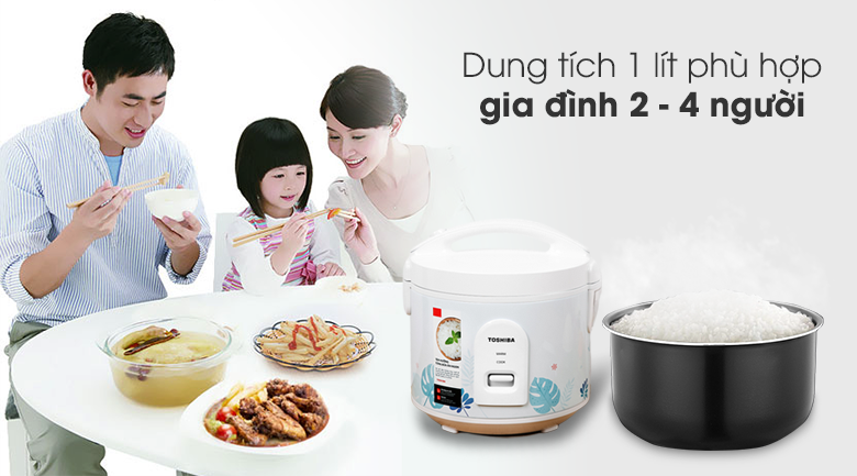 - Nồi cơm nắp gài dung tích 1L nấu đủ cho gia đình từ 2-4 người.