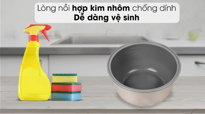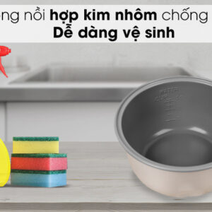 - Lòng nồi bằng hợp kim nhôm chống dính an toàn khi sử dụng và vệ sinh dễ dàng.