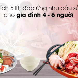 - Nồi lẩu điện dung tích 5 lít, công suất lớn 1360 W.