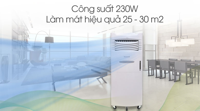- Quạt điều hòa có công suất 230 W, làm mát cho không gian 25 – 30 m².